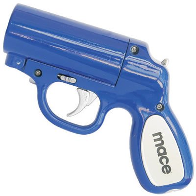 !9#:Mace® Pepper Gun Sky Blue, Sprays from any Angle up to 25', Trigger Activated LED for Better Aim